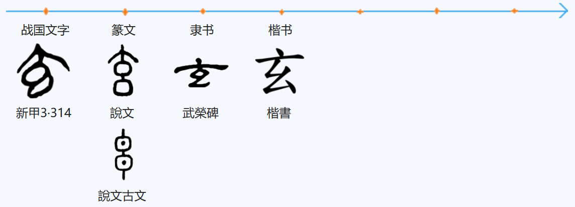 故,“玄”字的本义为宇宙万物呈现出的阴阳两面和双螺旋运动状态。后引申出赤黑色、深奥、玄妙、幽远等意思。